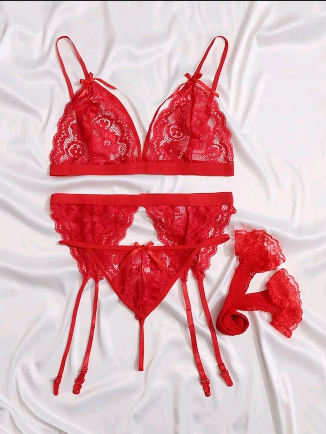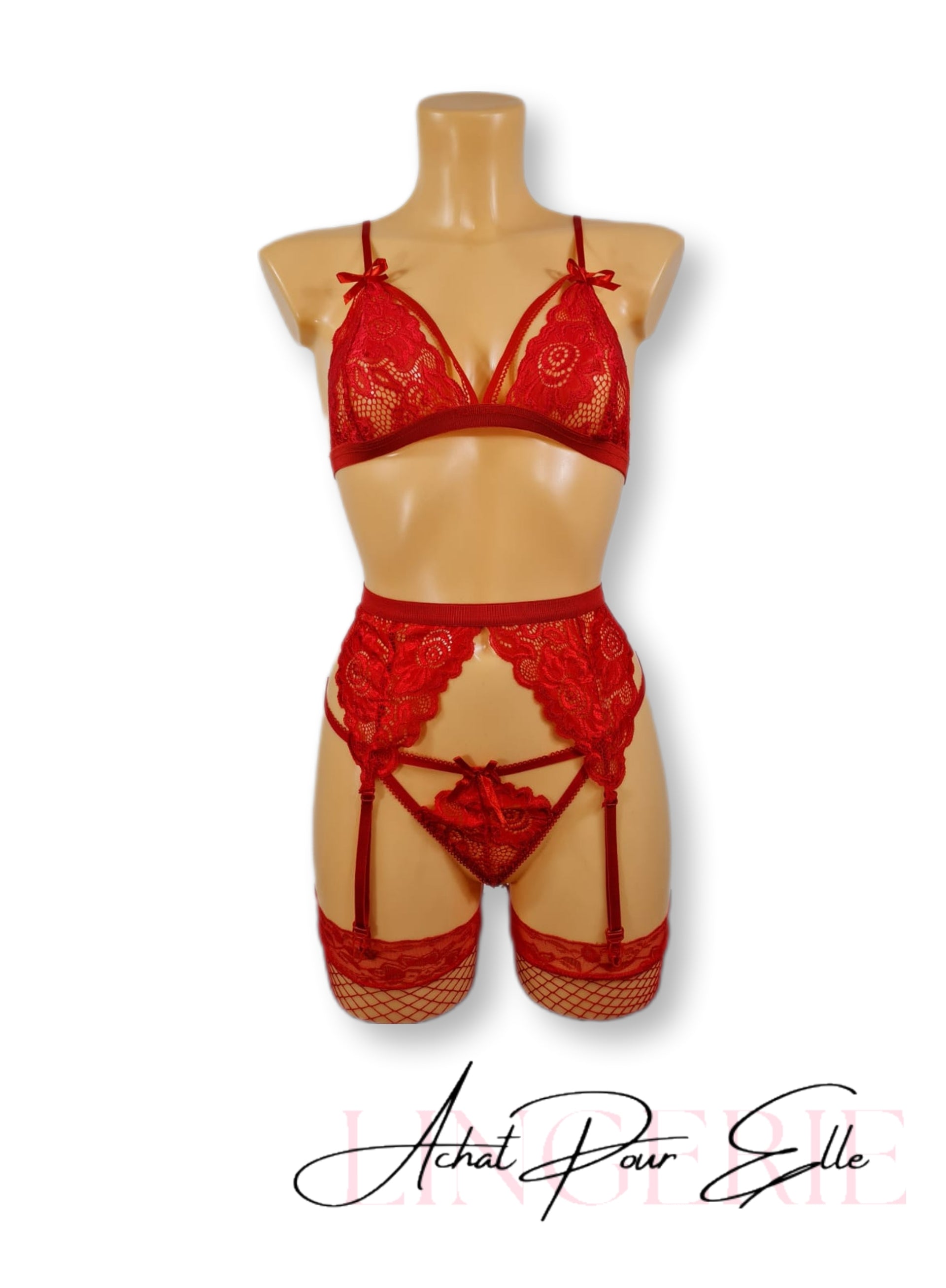Ensemble de lingerie en dentelle avec bas