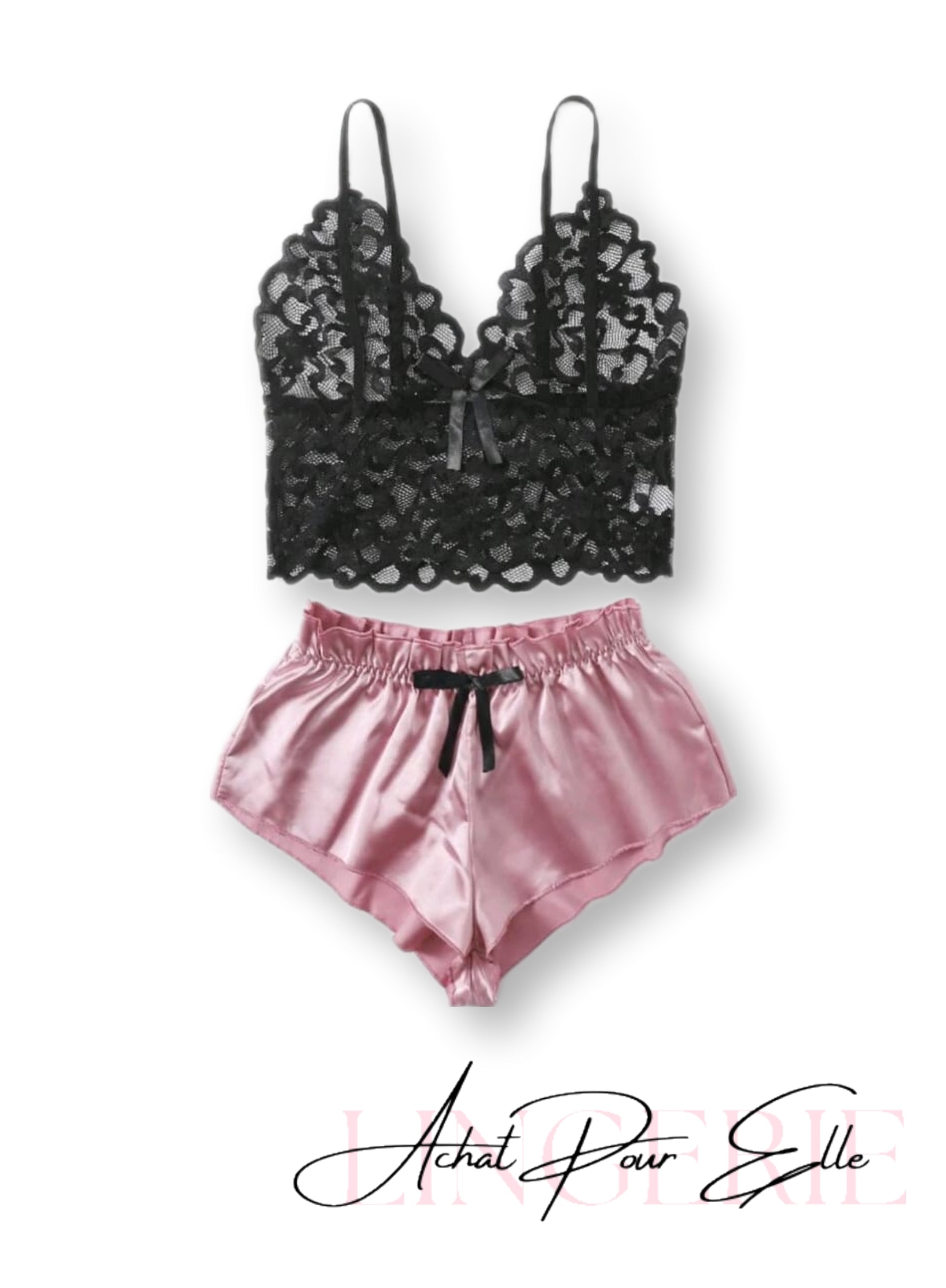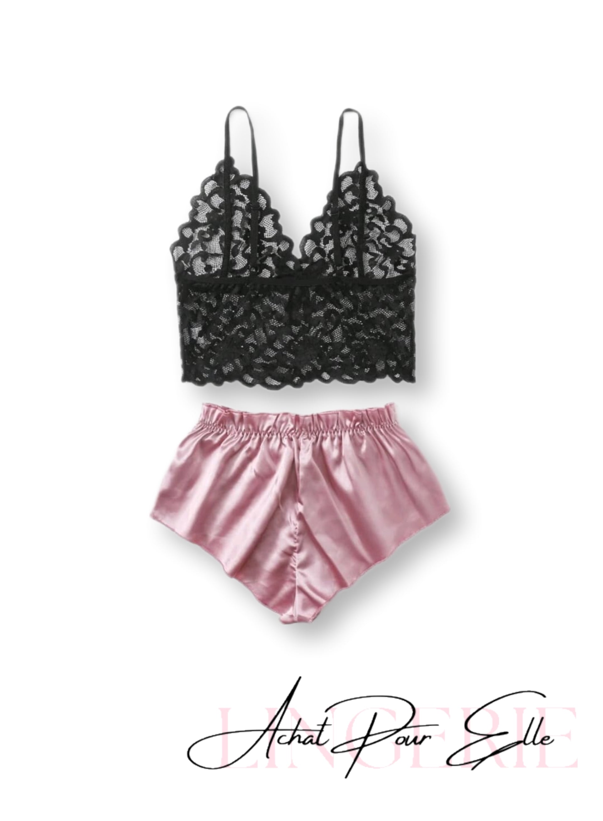 Pyjama en satin rose avec bralette en dentelle